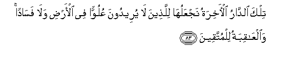 “That home of the Hereafter we shall give to those who intend not high- handedness or mischief on earth: and the end is (best) for the Righteous (Muttaqeen)” AlQasas 28:83.