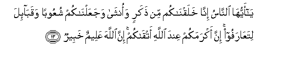 “…Verily the most honored of you in the sight of Allah is (he/she who is) the most righteous of you…” AlHujuraat 49:13.