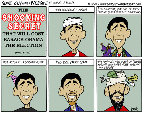 Obama knew Muslims as a child and even had Muslim relatives, through whom he gained some exposure to Islamic practices. OK, but how could any reasonable person conclude that Obama was a “practicing Muslim” and that his eventual embrace of Christianity constitutes apostasy? Normally I would say that Pipes and Luttwak, like all extremists, have an aversion to context and subtleties. But in this case, it’s not even subtle. First, there is the claim that Obama is a former Muslim based on some childhood experiences. Then, it is later argued that Muslims may view him as an apostate, but only if they mimic the same preposterous line of thinking that allowed Pipes and company to declare him a Muslim in the first place.