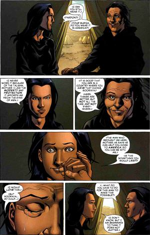 lol, poor AnonyMouse. I for one think it’s pretty cool that we have a “devout” sister represented in X-Men. This is a feat that does deserve a “boo yah!”. Fiqhi issues aside, this is clearly a better alternative. Muslims will always be depicted in some way in the Western media and we find that until now these have generally been the options: 1.) pathetic apologetics who don’t really practise the Sunnah and find themselves always trying to “defend” Islam with what isn’t Islam (you, the ” ‘wide-eyed virgins’ means “grapes” type) 2.) or those who react harshly to every little thing they deem “anti-Islamic” (Danish cartoons come to mind) and 3.) The brainwashed victims of Islam upon whom the religion has been forced, and thus need to be saved by the West. All three suck (the last two much more than the first). So wouldn’t it be nice to actually have a revamped version of number three? You know, someone actually practicing the religion properly, and also appreciating the wisdom’s being the Islam, and even more, someone who practices Islam for herself and not for her parents…considering Sooraya’s conversation with her mom, I’d say Marvel is closer than any other western media outlet has been.