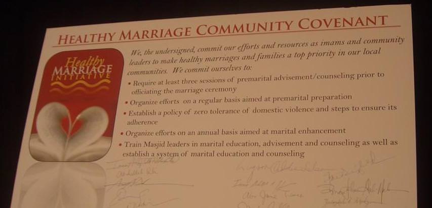 I have added a photo of the covenant (click on it to enlarge) that was then signed on by the Imams present at the community, who pledged “We, the undersigned, commit our efforts and resources as imams and community leaders to make healthy marriages and families a top priority in our local communities, committing” to the following five points: