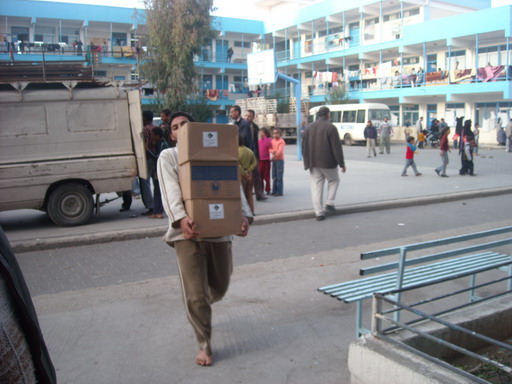 The things will be distributed in the Al Nuseirat U.N. school.