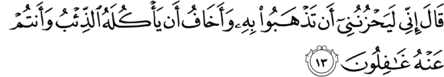 Before we move on, notice that Ya‘qub gave them the very excuse they would use in a few ayat later. It shows us that these young adults were not that mature to plan out the whole plot. They were so shortsighted and just thought about getting rid of Yusuf. What were they going to say? They hadn’t thought of this, so when Ya‘qub gives this line and says that he is worried the wolf will eat him, they have their plan. They have a plan now. They will tell their father the very excuse he was worried about.