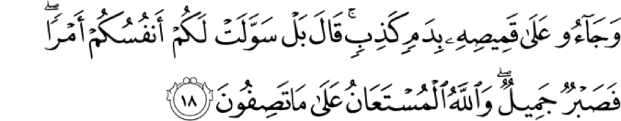 This is a phrasing in Arabic that cannot be translated into English. There is a missing phrase (ellipses) here. In English, either the full phrase is: “I shall have a beautiful patience” or “there is nothing for me to do better than having a beautiful patience.” This is not a full sentence. The ellipses here simply indicate that Ya‘qub is submitting to the will of Allah and saying, “I will have a beautiful patience.” This shows us a number of things: