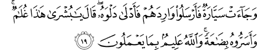 We will conclude by saying that Allah is setting the story up, and a new phase is about to begin where he is leaving the land of Canaan and Filisteen because his brothers have plotted and planned against their father. He is being carried with sacks of other merchandise hidden.