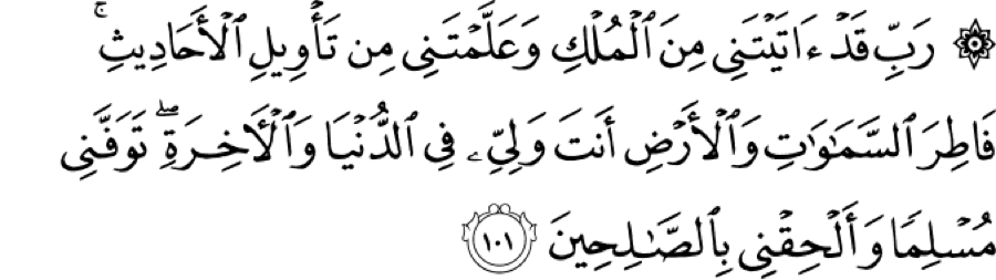 This paragraph and this du‘ā’ is a very profound paragraph that summarizes the gist of the story and the īmān of Yūsuf (‘alayhi’l-salām) and what he is thinking about. He wants Islam in this world and he wants Jannah and the ṣāliḥīn in the next.
