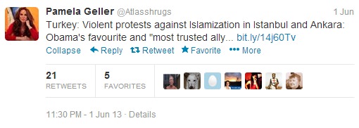 For once, Pamela Geller (the well known anti-Islam blogger who stated that she hopes Israel bombs Makkah and Madinah) is right. This isn’t about trees at all. It is about the secular bloc in Turkey making a final anarchic stand against what they hate most in this world – their nation coming closer to Islam once more.