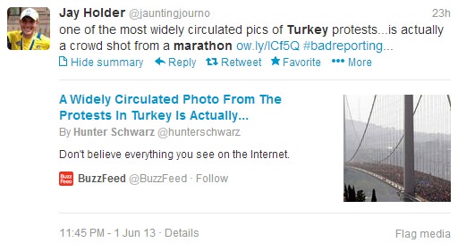 Now, I think there are way too many conspiracy theories in the Middle East but the way that a photo from last year’s Istanbul marathon was passed off as a picture of protesters swarming a bridge made me question who was behind it and what motive did they have.