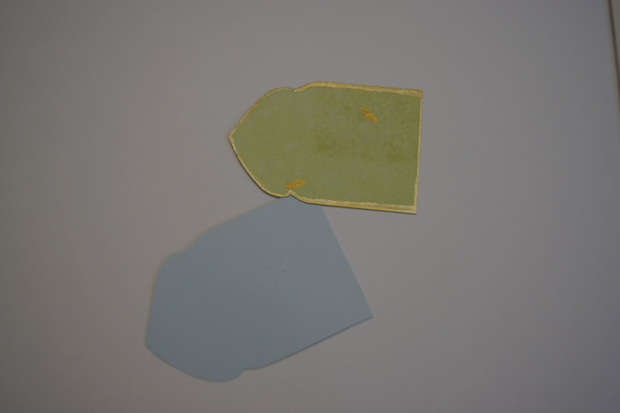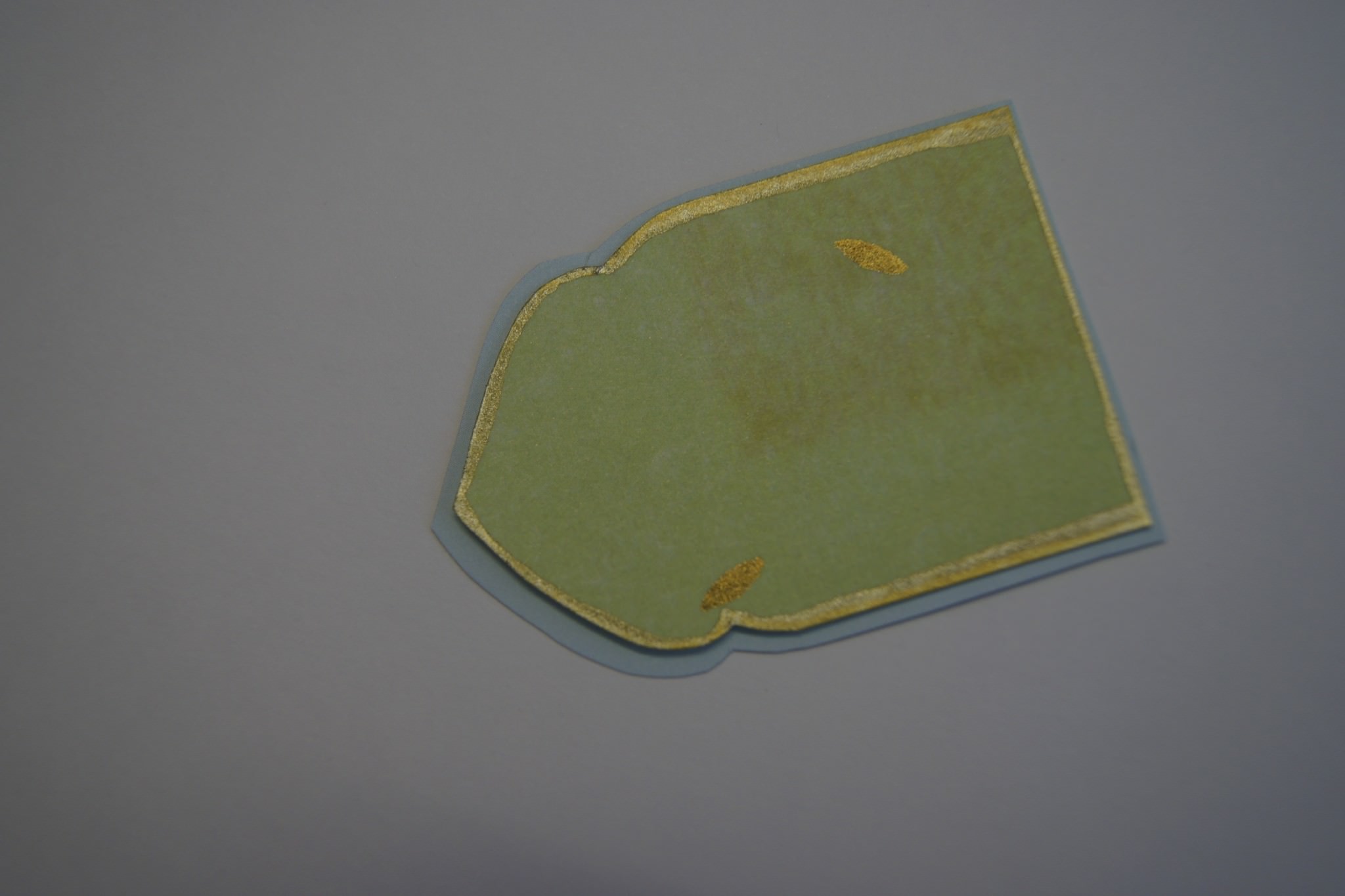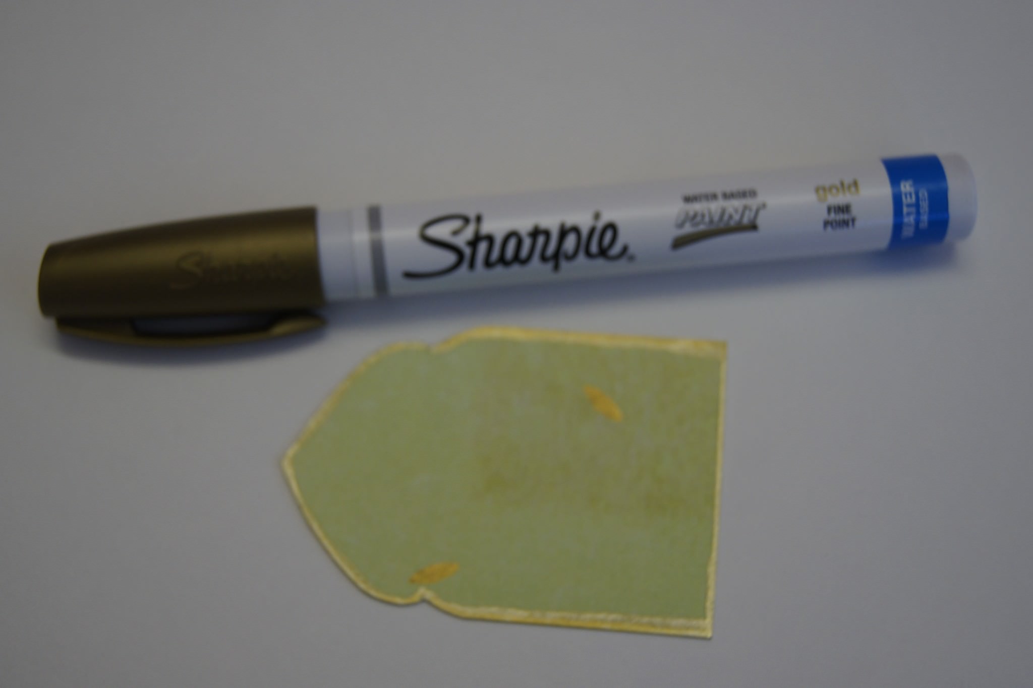 2. Once you have a template ready, use a recycled greeting card and trace and cut out the shape. When making my card, I decided to accent the edges with a golden sharpie (optional).