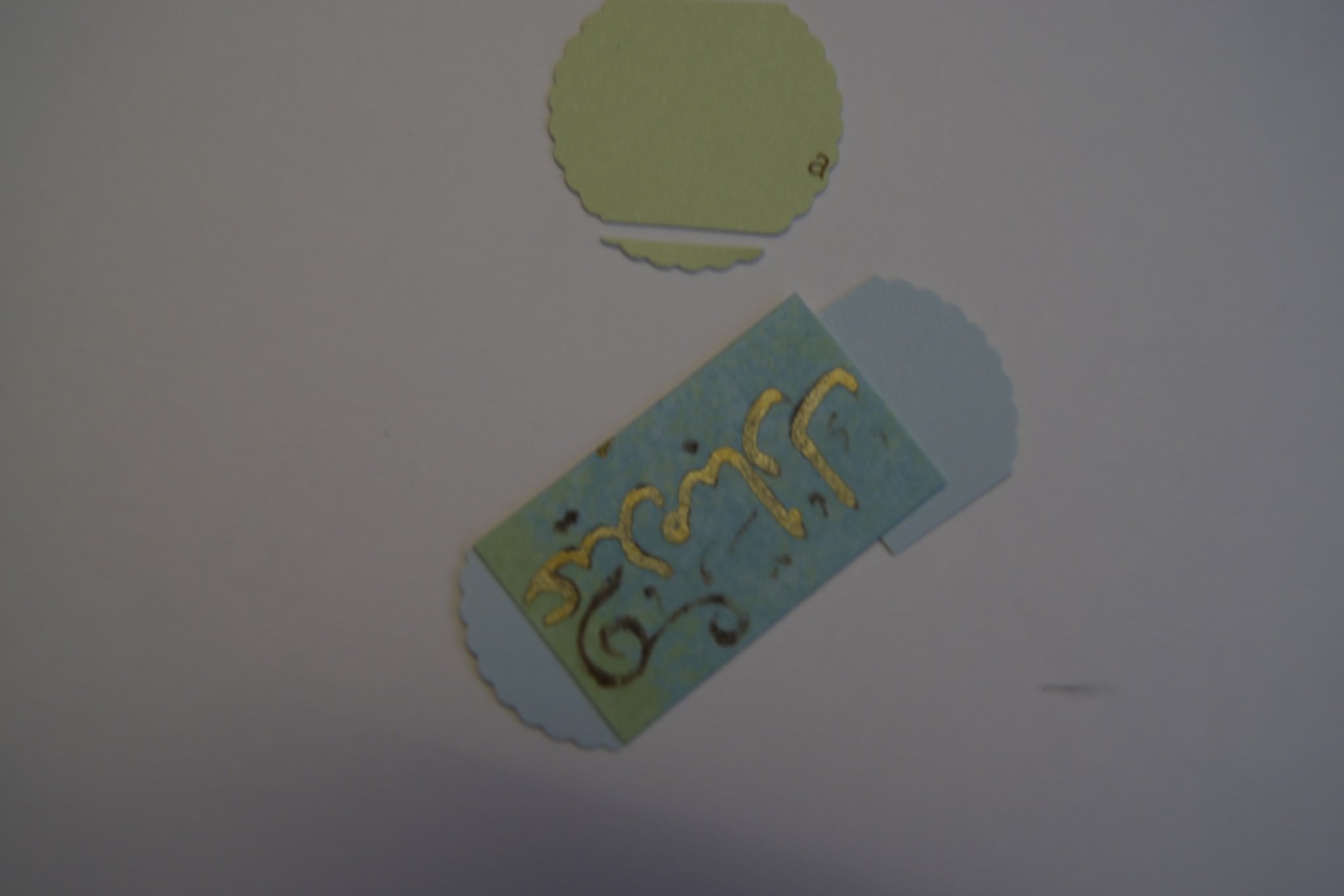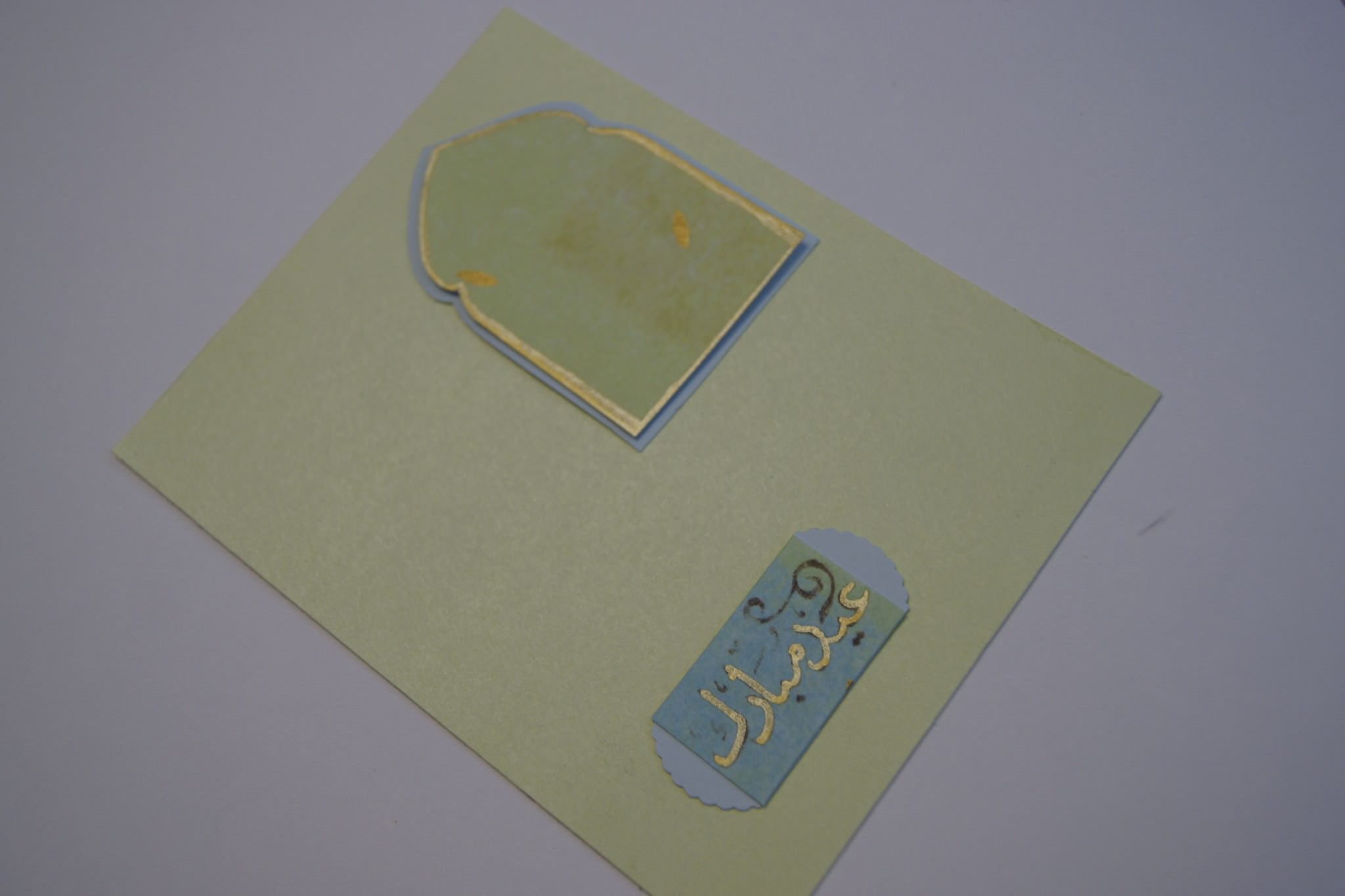6. I wanted to add a bit of blue to my Eid greeting so I used a 1” circle punch and trimmed off the excess to match the greeting size (shown below).
