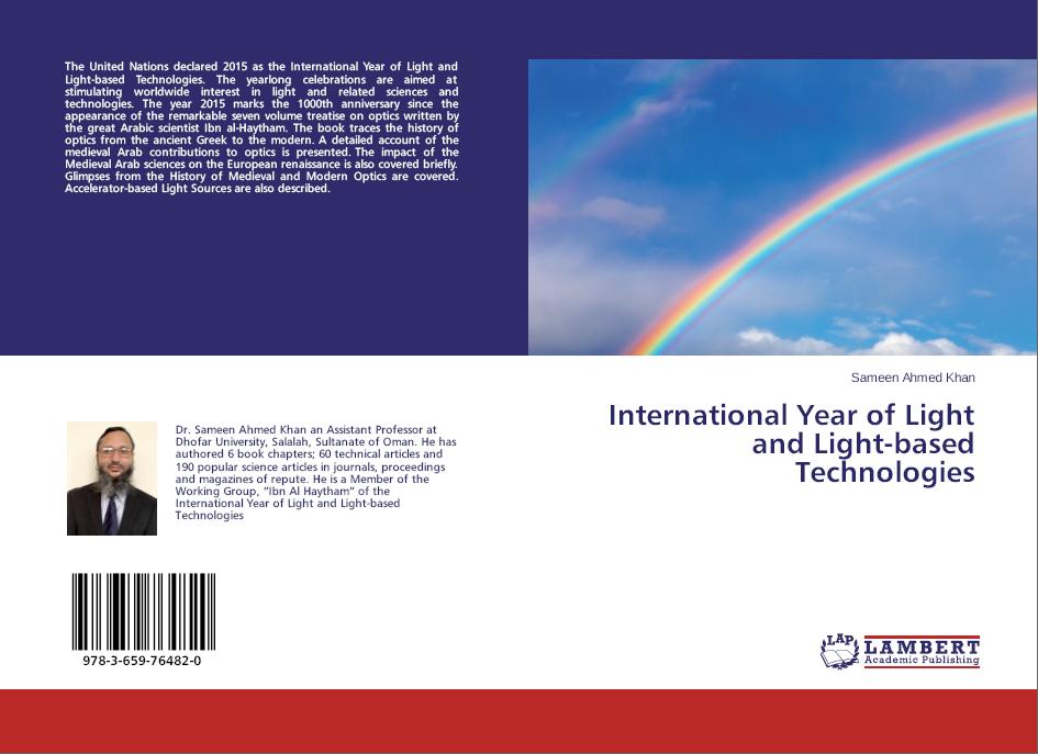 Sameen Ahmed Khan, International Year of Light and Light-based Technologies, LAP Lambert Academic Publishing, Germany (30 July 2015). ISBN-13: 978-3-659-76482-0 and ISBN-10: 3659764825