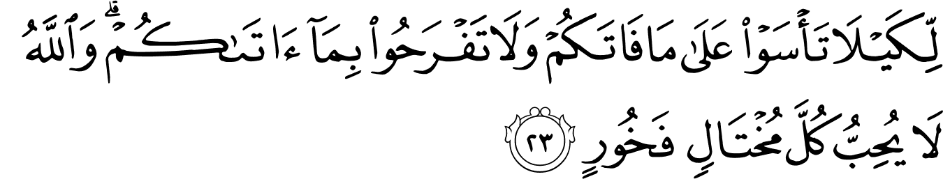 “No calamity afflicts the earth or yourself except that it is written in a book (preordained) before it comes into existence، That is indeed easy for Allah. This is so, so that you do not grieve over what has missed you nor become arrogant because of what you have received..” [57:22-23]