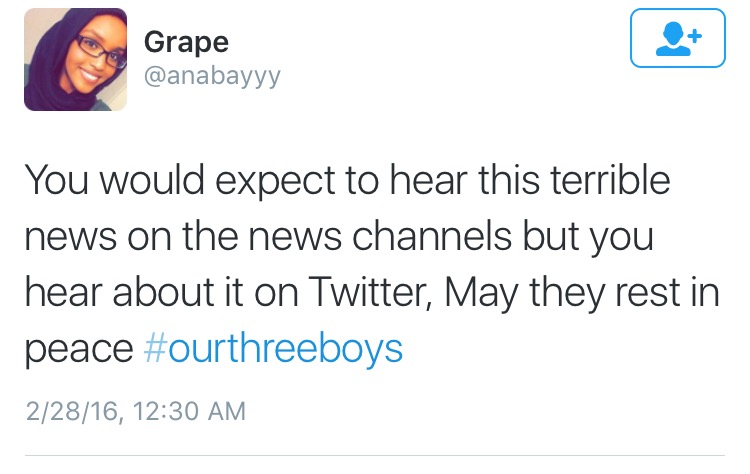 salam aleykum. About the victims of Chapell Hill, there were a lot of stuffs behind the #ourthreewinners: charity, a website was created, Deah was trying to raise money to help Syrian refugee in Turkey for dental care,… I hope we will know what happened for those 3 Muslim boys, in shaa ALLAH.