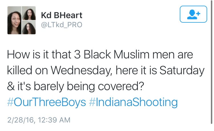As the story develops it is apparent that it carries the same weight as the Chapel Hill Shooting that initiated the hashtag #OurThreeWinners. The social media campaign erupted virally transcending the internet with Steph Curry paying homage to the hate crime by wearing their names on his game sneakers. On February 10 2015, Deah Shaddy Barakat, Yusor Mohammad Abu-Salha, and Razan Mohammad Abu-Salha were murdered in the same exact fashion as the young men in Fort Wayne.