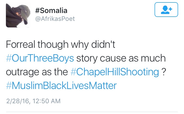 three young Muslims have been killed in America. the parallel to Chapel Hill is obvious and racism is the only reason to go into denial mode.