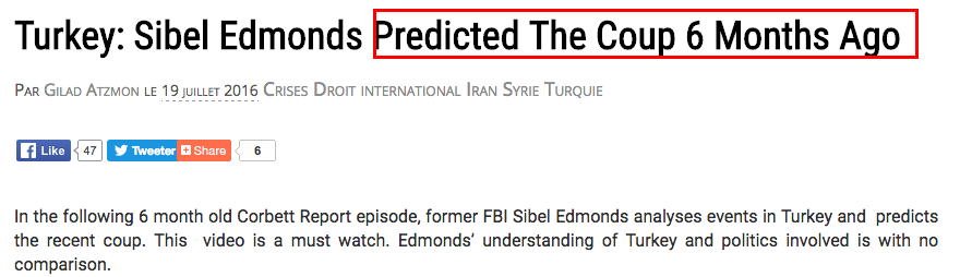 Sibel is as anti-coup as it gets on the Turkey issue. She openly declared it a CIA plot using Gulen. Yes she predicted the coup but it wasn’t from the angle this article is talking about. It’s a bit messed up to use a headline about her as a graphic on this piece as she stands on the other side of the aisle. I can’t take articles seriously which make such glaring analytical errors.