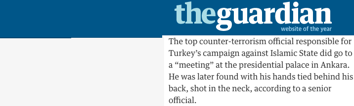 The Turkish Interior Minister was invited to an important meeting on Friday evening, which was in fact an ambush at the start of the coup. He was busy and never made it. Unfortunately, one of the top Turkish counter-terrorism chiefs did make it to the “meeting” and was later found with his hands tied, shot in the neck.