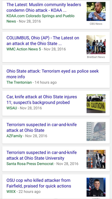 However, their article about the violence at Ohio State, luridly headlined “Ohio State attack: What we know about Abdul Razak Ali Artan,” provides detailed documentation of his social media habits and personal life. It digs through his postings and background, drawing together past statements to craft a narrative charting a path toward violence.