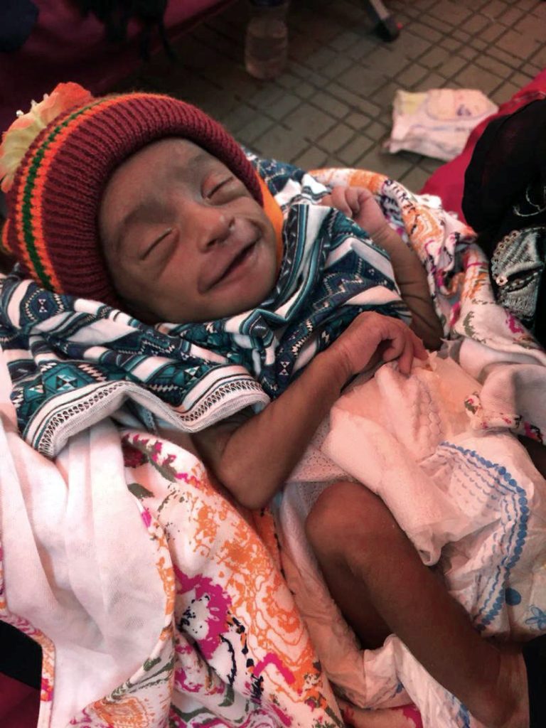 Miss Rashida was a 38-day-old infant with severe malnutrition. She weighed, at best, 1 kg (2.2 lbs). The mother reported that she carried the child for 9 months, but she looked as if she was a 28-week-old premature infant. Rashida was severely dehydrated with sunken eyes and barely flinched when I touched her. The mother reported that her breast milk supply was much lower lately, and the infant was not interested in suckling. I told the mother that I wanted to send her and the infant by ambulance to the Malaysian Field Hospital, where the infant could get rehydrated and started on a refeeding protocol. Otherwise, the infant would surely die.