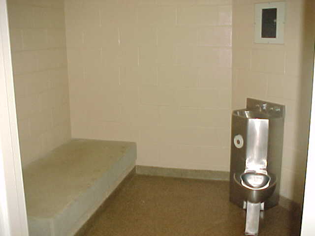 He was led into the station limping and bloody, where he was fingerprinted and photographed, then deposited in a cube-shaped and locked booking room that contained a steel toilet, a molded concrete bench that extruded from the wall, and a payphone. The numbers of various bail bonds agents were written in ink on the wall beside the phone.