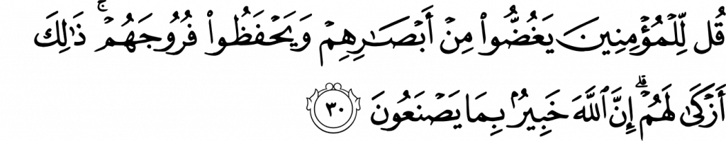“Tell the believing men that they must lower their gazes and guard their private parts; it is more decent for them. Surely Allāh is All-Aware of what they do. And tell the believing women that they must lower their gazes and guard their private parts” (s. 24, v. 30-31).