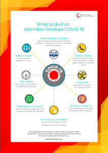 9.1 Plan for if someone tests COVID +ve – Someone in the Mosque could still test COVID positive. Having a plan in place makes the whole thing a little less stressful. Download here.