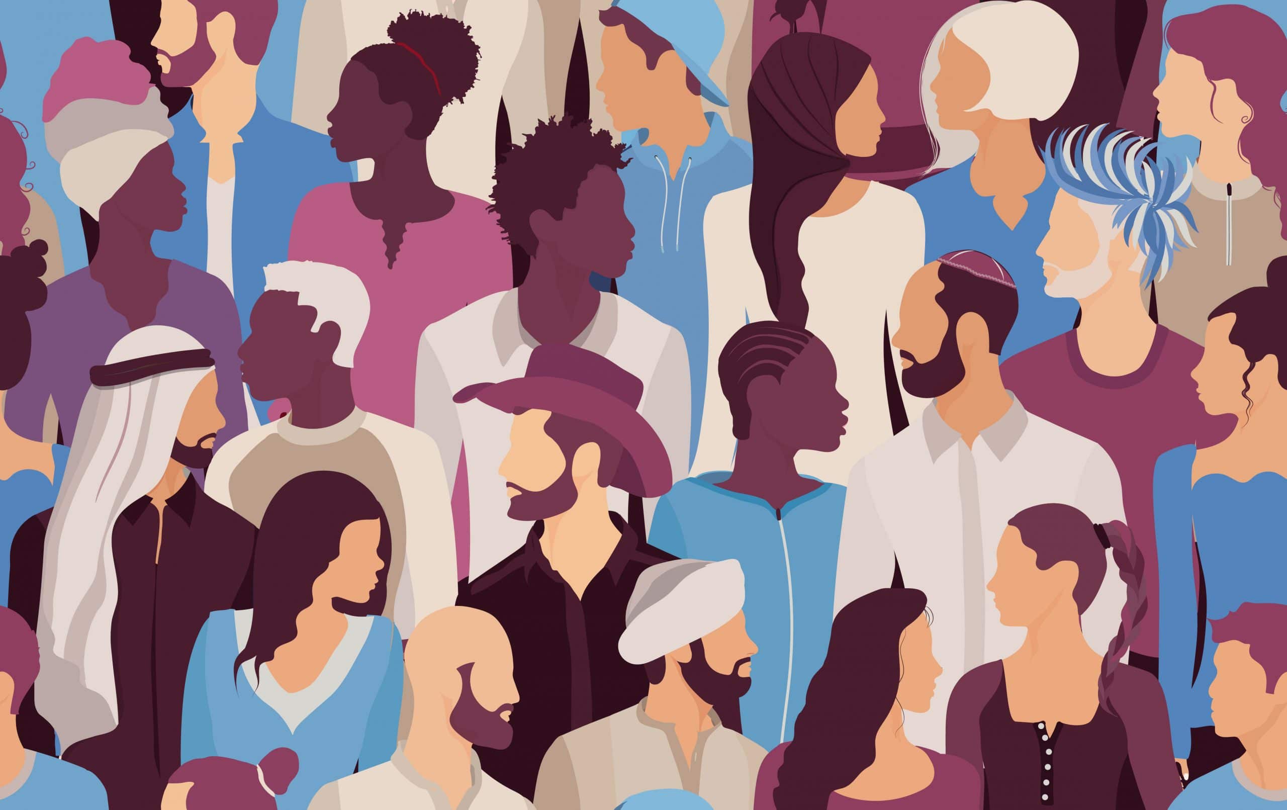 People talking diversity. Seamless pattern. Communication dialogue and connection between Crowd diverse multiethnic and multicultural people. Community. Social network. Inform. Solidarity