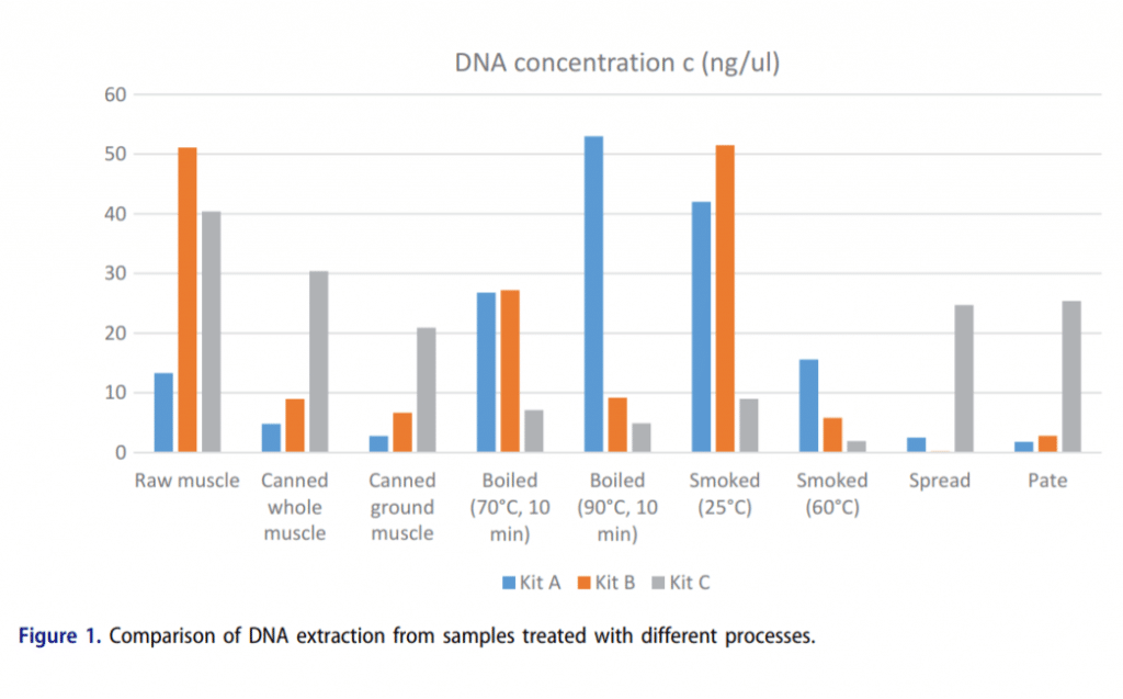- Zora Piskata, Eliska Pospisilova & Gabriela Borilova (2017) Comparative study of DNA extraction methods from fresh and processed yellowfin tuna muscle tissue, International Journal of Food Properties, 20:sup1, S430-S443, DOI: 10.1080/10942912.2017.1297953 (Footnotes 8, 11)