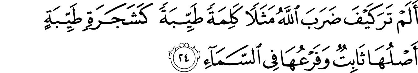 “[Prophet], do you not see how God makes comparisons? A good word is like a good tree whose root is firm and whose branches are high in the sky, yielding constant fruit by its Lord’s leave- God makes such comparisons for people so that they may reflect.” [Surah Ibrahim:24-25]