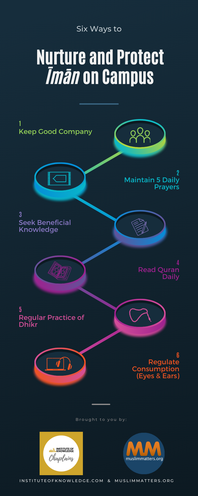 The importance and significance of prayer and its relation to our faith cannot be overemphasized. It is the most important act of worship that we are required to do. No matter what happens, make sure to pray your five daily prayers on time regularly and consistently. Ideally, perform them in congregation with other students on campus. Prayer is a light that guides us to the path of success. It illuminates hearts and minds, lighting the path to guidance and righteousness. It has a profound spiritual effect upon us.