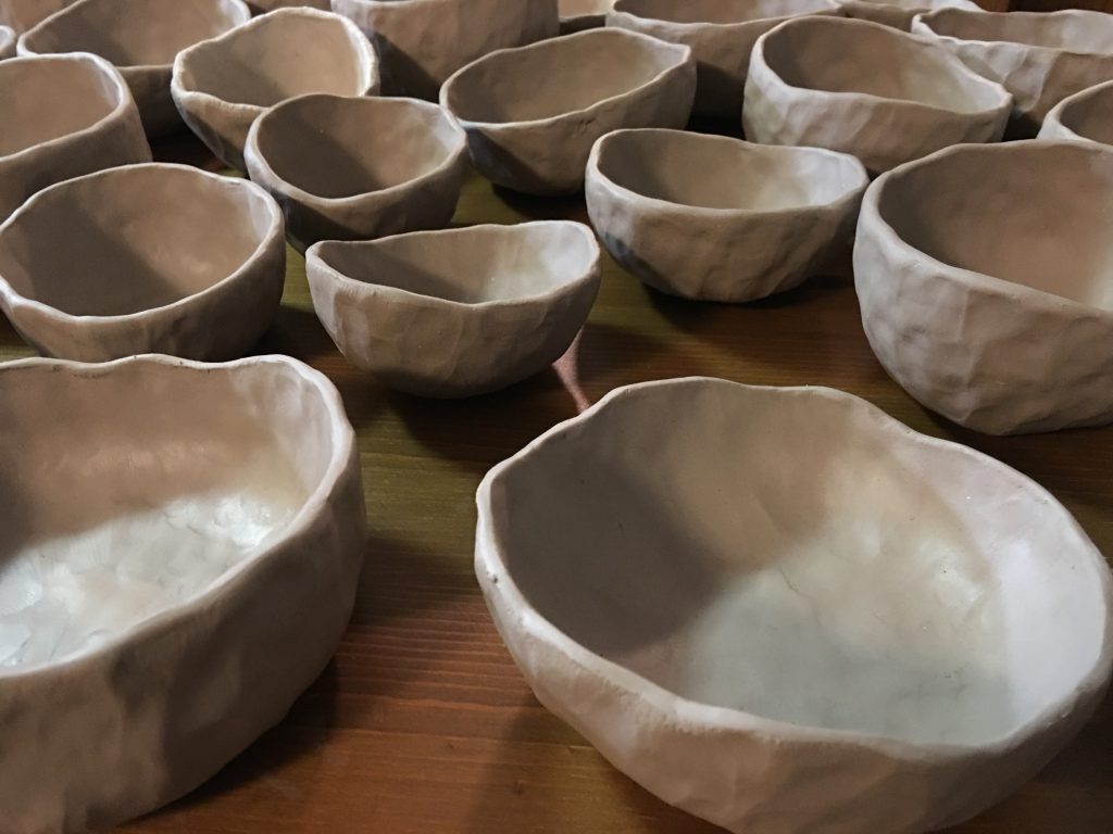 One day, while working at my dining room table, I faced the half-wall of glass shelves where the 99 vessels were stored. They called out to me, “why are we sitting on a shelf in this cabinet when we should be sharing the gifts we shared with you?” I was inspired but feeling stuck by what sharing might look like, so I got in conversation with my art community at Red Dirt Studio in Mount Rainier, Maryland, an incubator of multimedia artists founded by clay artist, soil lover, and community organizer Margaret Boozer in 1996.