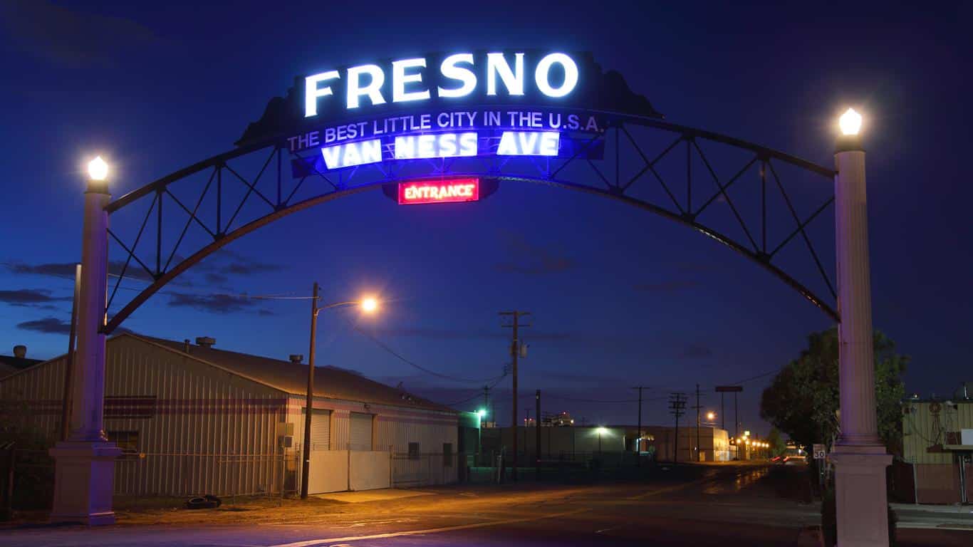 I get a ride down to Kingsburg, a half hour south of Fresno. The Swedish City, they call it. Population 12,000. I take another break. The AM PM market has a deal going on: sandwich, chips and a soda for $5. I buy a tuna sandwich, gas up the car, and eat in the lot of a mini mall, in front of a hair salon. Then I head back to Fresno with the app on.
