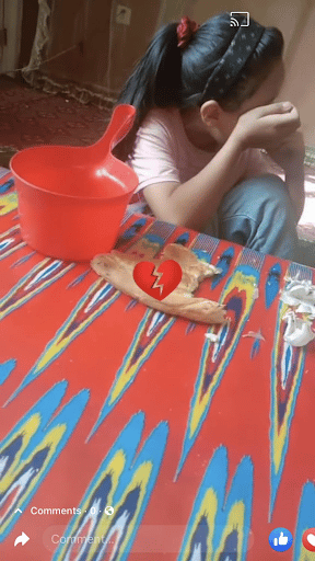 A little girl from Ghulja crying due to food shortage (extracted from DouYin by Zumrat Dawut)