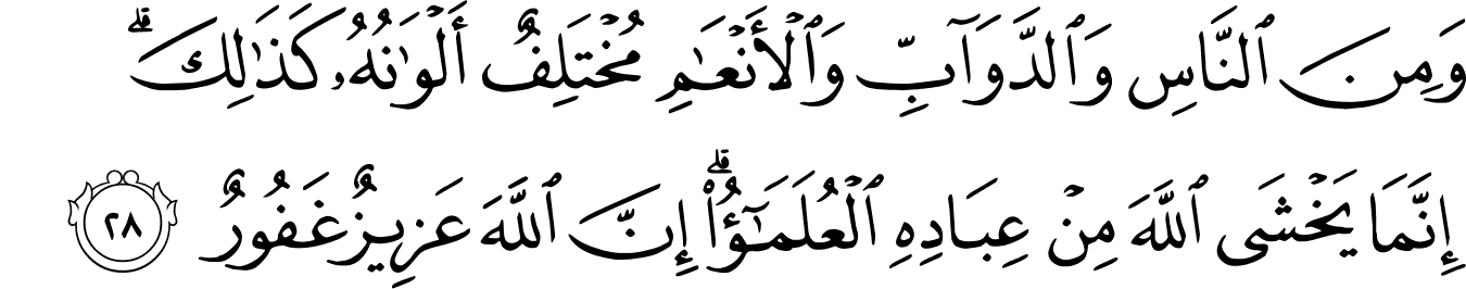 “And among people and moving creatures and grazing livestock are various colors similarly. It is those of His servants who have knowledge who stand in true awe of God. God is almighty, most forgiving.” [Surah Fatir: 35;28]