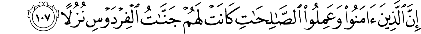 “Indeed, those who have believed and done righteous deeds – they will have the Gardens of Paradise as a lodging,