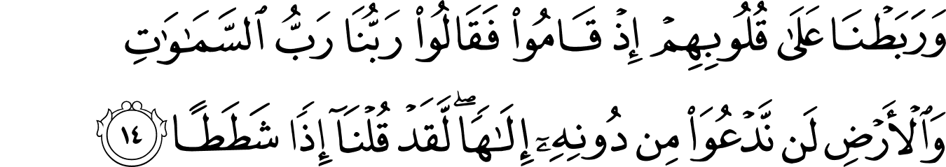 “And We made firm their hearts when they stood up and said, “Our Lord is the Lord of the heavens and the earth. Never will we invoke besides Him any deity. We would have certainly spoken, then, an excessive transgression.” [18:14]