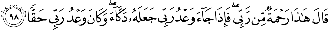 “This is a mercy from my Lord. But when my Lord’s promise is fulfilled, He will raze this barrier to the ground: my Lord’s promise always comes true.” [18:98]