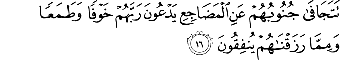 “They arise from [their] beds; they supplicate their Lord in fear and aspiration, and from what We have provided them, they spend.” [32;16]