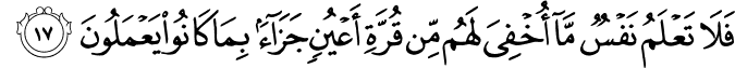 “And no soul knows what has been hidden for them of comfort for eyes as reward for what they used to do.” [32;17]