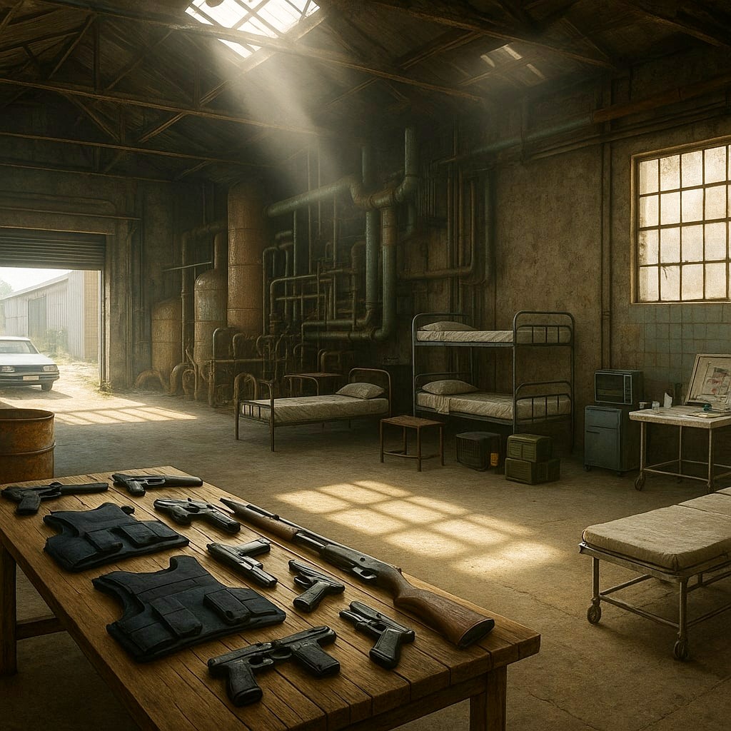 The factory interior smelled of rust and old syrup. The combination was sickly sweet, and made Zaid’s stomach rumble in discomfort. An immense complex of pipes and vats occupied the north side. The scattered furniture was aged, though the makeshift first aid clinic in one corner was better equipped than in the past. A heavy-duty first aid kit was laid open on a folding table, its contents sorted with clinical precision—bandages, syringes, surgical scissors, and a bottle of iodine.