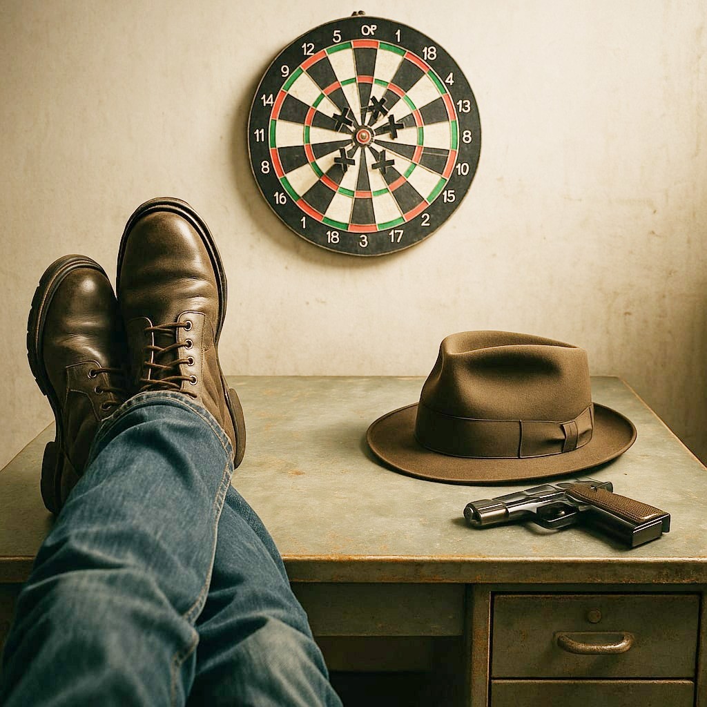 He threw another dart. It hit the exact center of the board and stuck, dislodging the previous one. He felt a vicious sense of satisfaction. If he couldn’t do anything else right in life, he could stick these stupid darts to the bullseye.