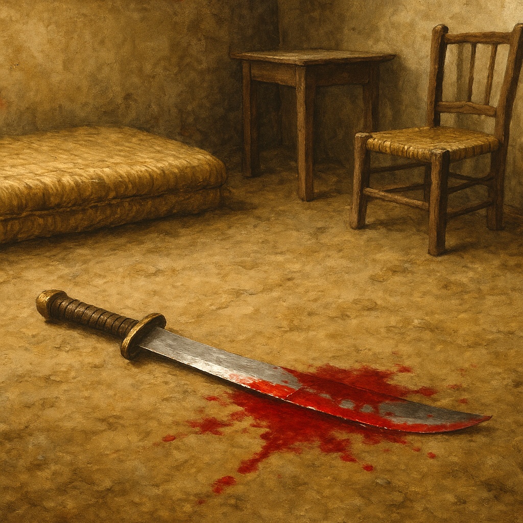 Leaving the man in the field for the moment, I scrubbed the floors inside. Seeing in my mind the point of the sword entering the man’s throat, remembering the slight resistance as it penetrated, I vomited, then cleaned that up as well.