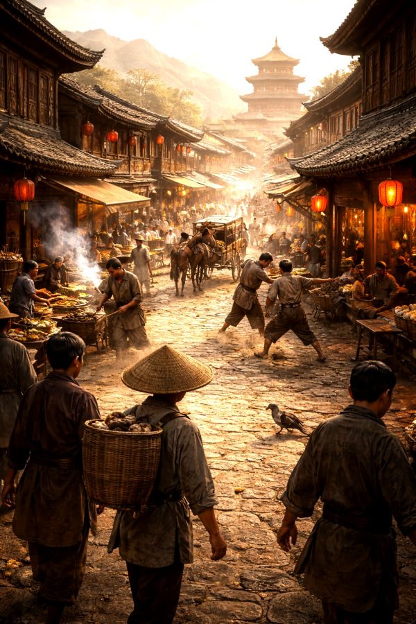 The alley was not as empty as I’d hoped. A woman paused at the far end, a basket of scallions on her hip, and stared at me with wide eyes. A pair of boys lingered nearby, whispering to each other, one pointing at the blood on my arm. An old man shuffled past slowly enough to make it clear that he was taking his time so he could watch. He grinned in embarrassment and looked away. Soon, two more people stopped. The city, it seemed, always had eyes.