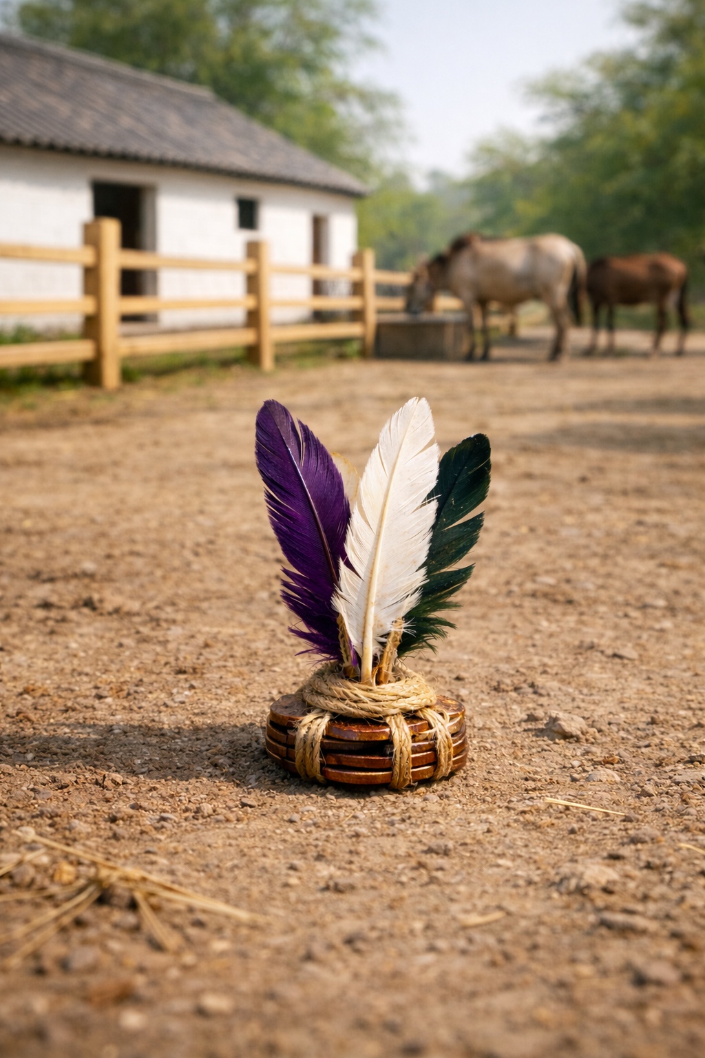 Haaris was delighted. He taught me jianzi, where we took turns kicking a small shuttlecock made of copper coins wrapped in twine, with chicken feathers sticking out of it. The idea was to balance it on one foot and kick it up in place, and keep catching it on the foot. Haaris excelled at it, but the first time I tried it I sent it almost onto the roof of the barn, which made Haaris cackle like a chicken.