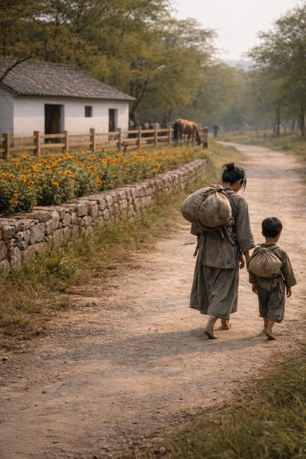 As the days passed and the weather grew colder, more refugees began to appear. A trickle became a stream. Old men leaning on sticks. Women with infants bound to their chests, their faces gray with exhaustion. Families, and even small groups, all going north, fleeing the evil in the south. They moved quietly, conserving breath, as if speaking too much might cost them something they could not afford to lose.