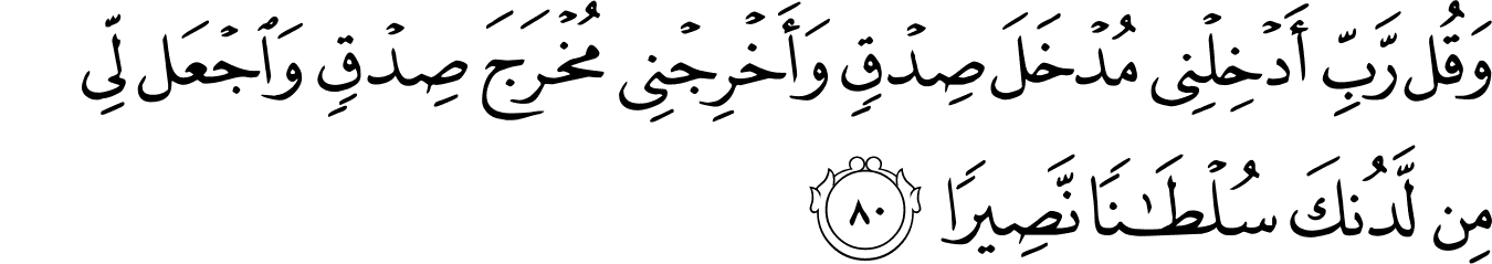 “And say, “My Lord, cause me to enter a sound entrance and to exit a sound exit and grant me from Yourself a supporting authority.”[Surah Al-‘Isra: 17;80]