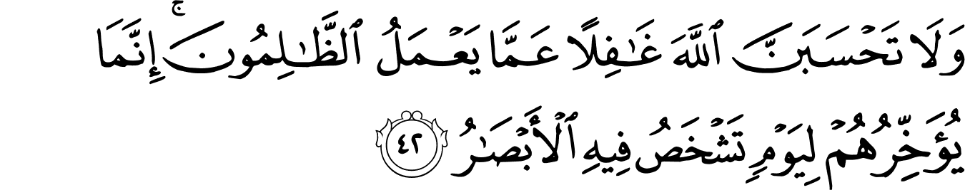 “Do not think that Allah is unaware of what the oppressors do. He only delays them until a Day when eyes will stare in horror.” [Surah Ibrahim 14:42]