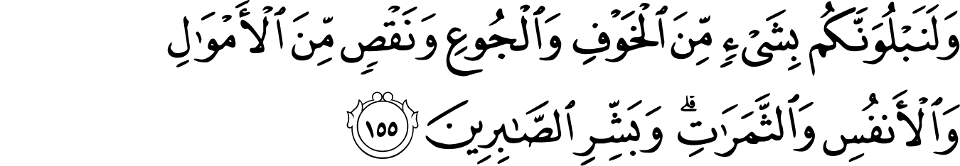 “And We will surely test you with something of fear and hunger and a loss of wealth and lives and fruits, but give good tidings to the patient.” [Surah Al-Baqarah 2:155]