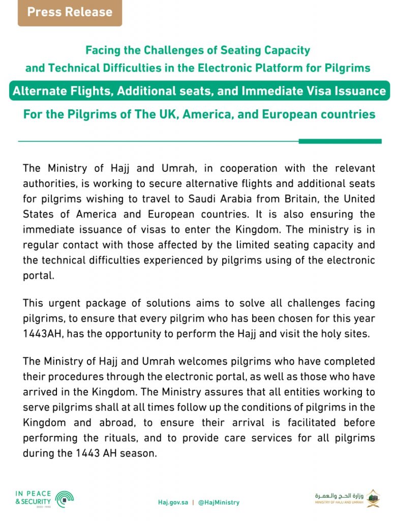 As I have previously shared on a way forward for Hajj, from next year onwards I strongly recommend that this proposal is adopted. There are merits to the new system once it has been tried and tested, there are resources to cope and support pilgrims and the perfect time to do that is when the Hajj quotas increase in line with the 2030 vision. For now we must involve Hajj operators as we used to, but use the benefits of the digitilisation where we can in creating efficiencies, transparency and competitive price and choice.